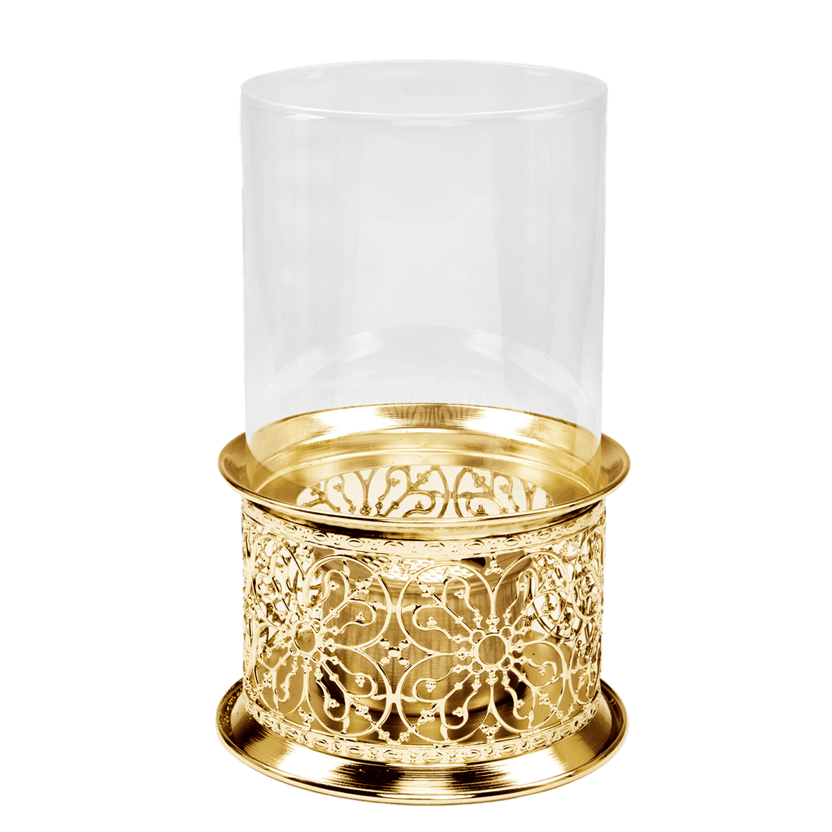 Αυτός ο κομψός επιτραπέζιος καυστήρας συνδυάζει την πρακτικότητα με την εκλεπτυσμένη αισθητική, αποτελώντας ιδανική προσθήκη για κάθε χώρο. Διαθέτει μια διαφανή γυάλινη καλύπτρα που προστατεύει τη φλόγα και προσφέρει ασφαλή χρήση, ενώ η περίτεχνη μεταλλική βάση του, με λεπτομερή σχέδια, προσδίδει μια νότα πολυτέλειας και παράδοσης. Είναι ιδανικός για τη δημιουργία ζεστής και φιλόξενης ατμόσφαιρας, είτε πρόκειται για το σαλόνι, την τραπεζαρία, είτε για επαγγελματικούς χώρους.