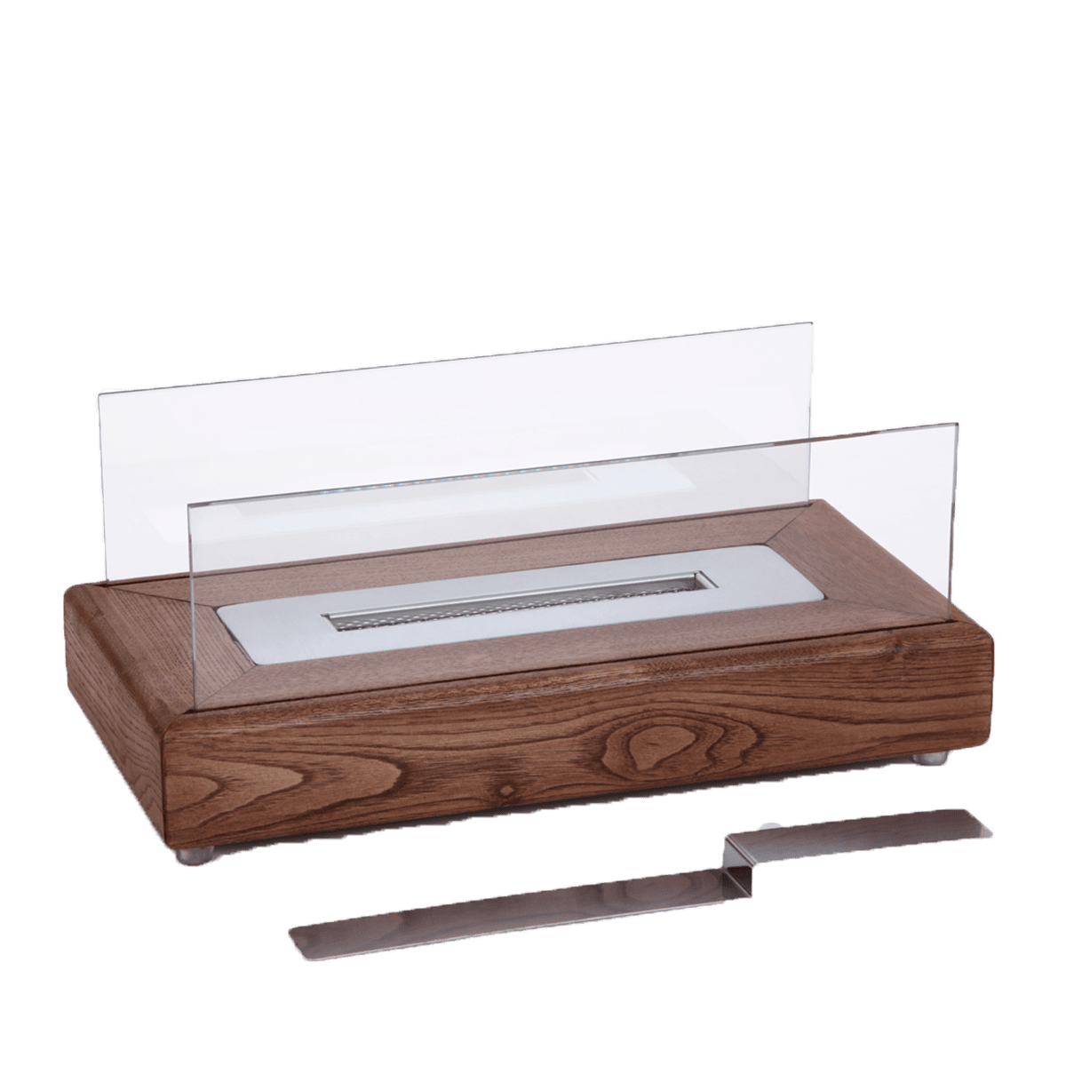 Αυτός ο κομψός καυστήρας βιοαιθανόλης συνδυάζει τη ζεστασιά του φυσικού ξύλου με τη μοντέρνα αισθητική. Η συμπαγής ξύλινη βάση, φιλοξενεί έναν ατσάλινο καυστήρα βιοαιθανόλης, προσφέροντας μια καθαρή και άοσμη φλόγα. Οι διαφανείς γυάλινες πλευρές εξασφαλίζουν ασφάλεια και προστασία από τη φλόγα, ενώ επιτρέπουν ανεμπόδιστα την θέα του χώρου. Ιδανικός για να δημιουργήσει μια ατμόσφαιρα χαλάρωσης και κομψότητας σε κάθε χώρο, από σαλόνια μέχρι εξωτερικούς χώρους.